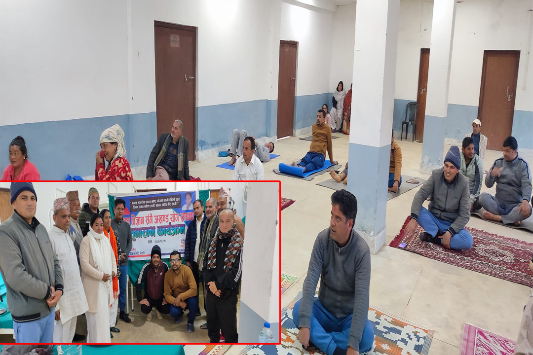 बैतडी-बैतडीको पाटनमा अखण्ड योग साधना शुभारम्भ भएको छ । नगरपालिकाको आयोजना तथा पतञ्जली योग समिति बैतडीको सहयोगमा अखण्ड योग साधना सुरु भएको पाटन नगरपालिकाका नगर उपप्रमुख कमलसिंह बोहराले जानकारी दिए ।